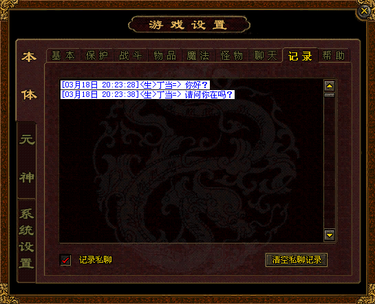 8.记录 在“记录私聊”左面的复选框打钩,可保存您与他人的私聊历史记录。