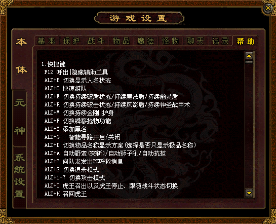 小贴士:您要仔细研究一下这些功能哦,它们可是您打怪、打宝以及PK时的好帮手。
